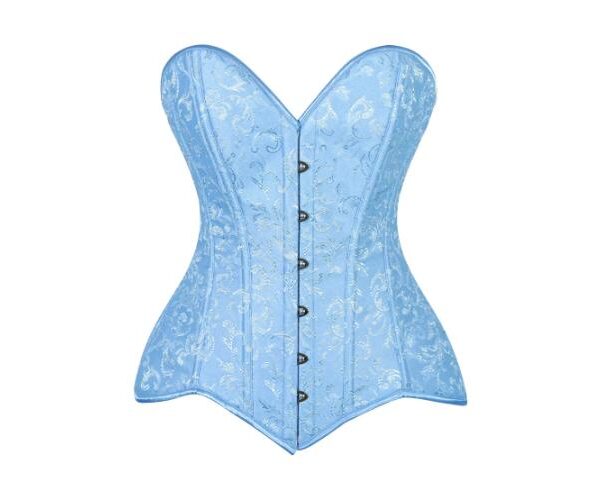 Blue Brocade Overbust Bridal Corset Top W/Busk Closure