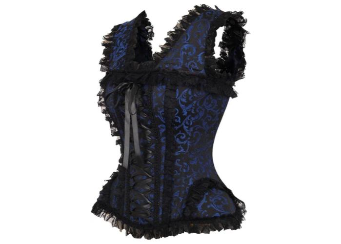 Blue/Black Swirl Brocade & Lace Steel Boned Corset Top Party Wear