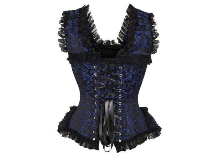 Discover the allure of timeless elegance with the Blue/Black Swirl Brocade & Lace Steel Boned Corset Top Party Wear a masterpiece designed for those who crave sophistication and support in their lingerie wardrobe. This exquisite overbust corset combines luxurious brocade fabrics with delicate lace accents, offering a swirl pattern in captivating blue and black hues that evoke mystery and romance. Whether you’re stepping into a special evening or embracing daily waist training, this steel boned corset delivers unparalleled structure and style, making it a must-have for fashion-forward women seeking to enhance their silhouette with confidence and grace.