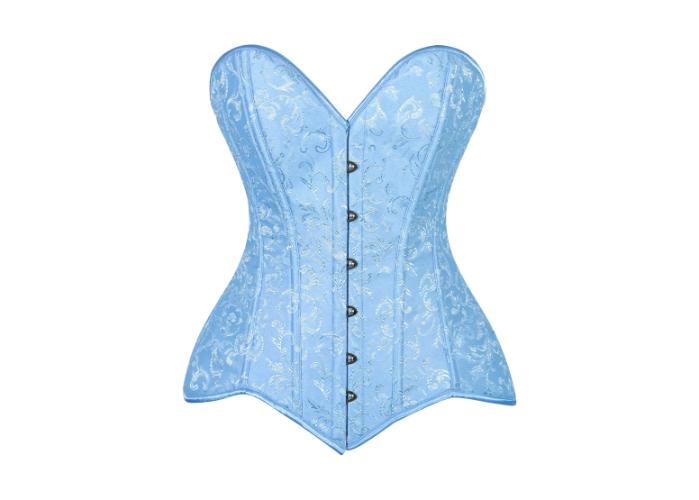 Blue Brocade Overbust Bridal Corset Top W/Busk Closure