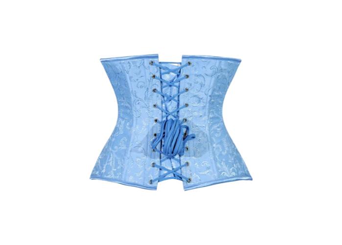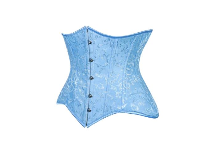 Bridal Blue Brocade Waist Training Under Bust Corset w/Front Busk Closure