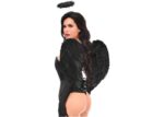 - Elegant Dark Angel Ensemble: Elevate your fantasy wardrobe with this 4-piece set, including a steel-boned full-bust corset, luxurious black gloves, ethereal black halo, and sweeping black feather wings—ideal for Halloween nights, burlesque stages, or gothic-themed gatherings.