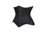 Gothic Black Brocade Waist Cincher Under Bust Corset w/Front Busk Closure