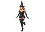 | Set Includes | Corset, black ruffle panty, witch hat, black gloves |