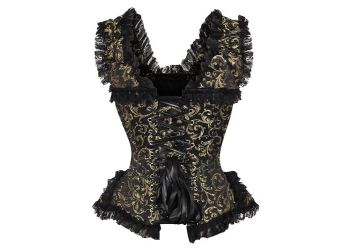 Weave the brocade lace steel boned corset into your ensemble with the finesse of a corset connoisseur, where its cap sleeves and swirling patterns become the heart of harmonious looks. This overbust wonder shines in solitude or synergy, adapting from boudoir whispers to bold declarations.