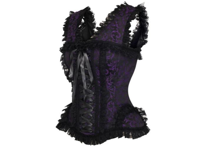 Indulge in the opulent embrace of vintage romance with the Purple/Black Swirl Brocade & Lace Steel Boned Corset Dress Costume, a breathtaking overbust masterpiece that elevates any lingerie collection to heirloom status. This luxurious overbust corset marries the rich, swirling patterns of high-quality brocade in striking red and black hues with delicate lace overlays, creating an elegant silhouette that’s equal parts timeless sophistication and whispered seduction. Designed for the discerning woman who cherishes both form and femininity, its 10 spiral steel bones and 2 flat reinforcements deliver unyielding support while the cap sleeves add a graceful, wearable touch. Whether you’re lacing up for a romantic rendezvous or layering into evening attire, this steel boned brocade corset invites you to savor the art of self-adornment, cinching your confidence into something truly enchanting.