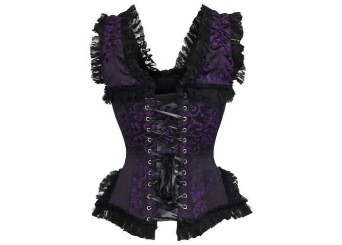 Purple/Black Swirl Brocade & Lace Steel Boned Corset Dress Costume