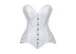 Unveil Timeless Elegance with the Waspie’s White Brocade Overbust Corset Top front Busk Closure